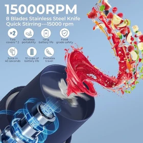 【Upgraded 1000ml Portable Blenders】The portable shaker blender comes with 1000ml capacity, allowing you to make food for the whole family at once without the need for repeated mixing. This electric portable blender cup offers maximum versatility with its easy access drinking lid, carrying handle, and carry hook. It is the perfect accessory for gym-goers, travelers, and campers. Gift this water jug blender to bring health and convenience to your family, friends, and loved ones.