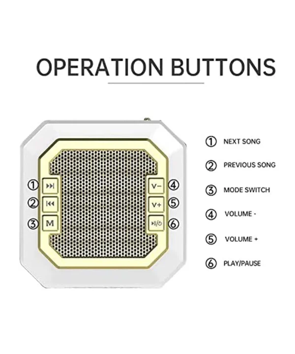 Product descriptionFunction: Complete Quran and surah ayat fast select One-click location Azan reminder time around the world 14 translations and 18 reciters High performance audio output 5W loud speaker Quran Ayah by Ayah word by word recitation Sahih Al-Bukhari, Hisnul Muslim, Salat Method *Sahih Al-Muslim, Hajj&Umrah, Al-Ruqyah Complete Tafseer Sharavi audio, 40Hadiths Hot Key MP3(Yaseen, Ayatul Kursi, Ruqiya)Rechargeable Li-battery (USB Charging) Sleep mode (speaker switch off after 30/60/90 mins) Clap lamp top to choose light brightness Style:Islamic Muslim Quran learning equipment Color: 7 Changeable colorful lights Support:Touch,remote and bluetooth phone application control Battery Li-ion:3.7V 1800mAh Working time :More than 4.5 hours Bluetooth/remote control distance:10-15m Memory: 8G
