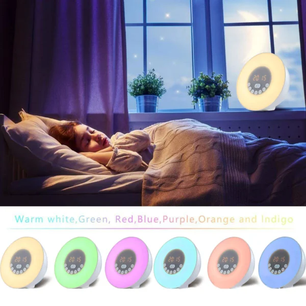 Time and alarm function.Touch, sleepiness, sunset, wake up, white light.