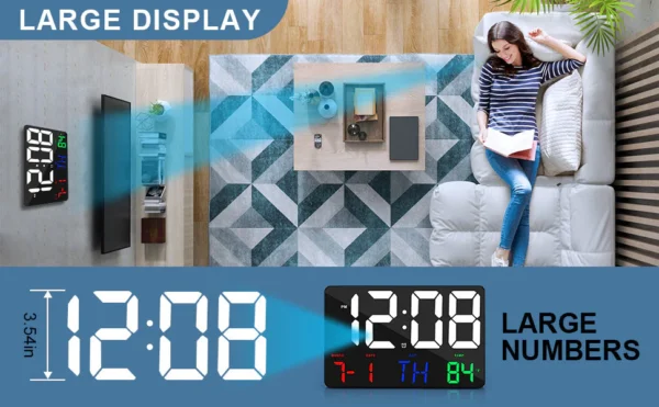 Warranty: 0 CRONY 717 White words wall clock Digital Clock Large Display,11.4″ Digital Calendar Alarm Day Clock with Wireless Remote Control About this item【Remote Controlled 11.4 Inch Digital Wall Clock】 The digital alarm clock measures a massive 11.4 inches display screen,making it easy to see and read temperat