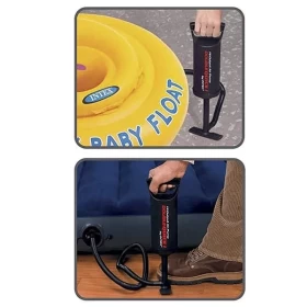 This Intex Double Quick hand pump is great for airbeds or other large inflatables, the simple to use Double Quick Hand Pump is the perfect accessory for inflating and deflating with ease. It is designed to pump air on both up and down strokes, this double action pump maximizes airflow, making inflating fast and simple. This hand pump includes 3 interconnecting nozzles with hoses to inflate or deflate different types of inflatables.