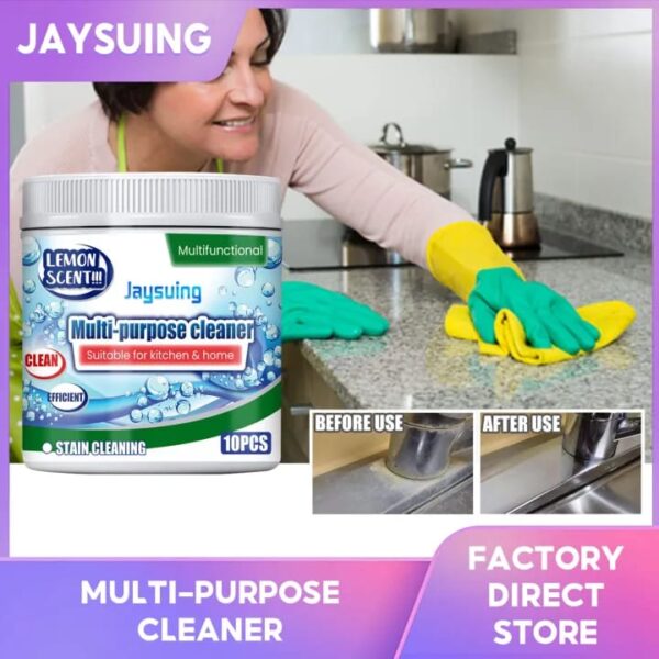From sticky kitchen messes to soap scum and hard water stains, Jaysuing Multipurpose Cleaner handles it allβ€”leaving behind a fresh, clean scent and a brilliant shine.