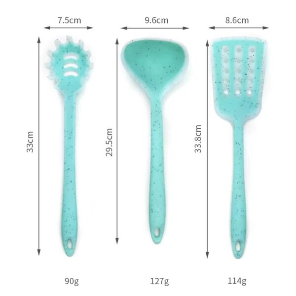 • Ergonomic, Comfortable Grip: The soft, ergonomic handles of the utensils ensure a comfortable grip while cooking. The lightweight design reduces hand strain, even during extended cooking sessions.