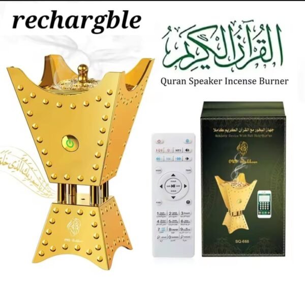 This beautifully crafted Quran speaker plays the holy Quran with clear and soothing sound, making it an ideal companion for daily recitation, listening, and reflection. Paired with an incense burner, it fills your space with delightful fragrances, further enhancing the ambiance for prayer, contemplation, or relaxation.