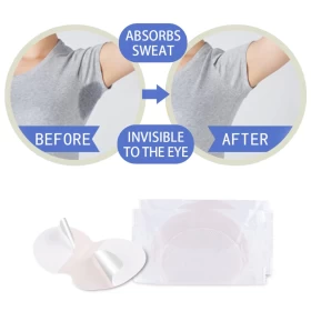 Description:Underarm Sweat Pad: Absorbs underarm sweat. Keep underarms and clothing clean and dry throughout the day. Suitable for most skin types.Three-layer absorbent structure: only 1mm thick, invisible, absorbs sweat quickly, light weight and comfortable to wear.Material: Made of high-quality non-woven fabric, good air permeability, dry and skin-friendly. Disposable, no need to clean, easy to use.Strong stickiness: The sweat pad is not only easy to stick, but also easy to peel off without leaving any residue on the clothes.Integrated high-temperature imprinting and shaping: star imprinting increases the air permeability of the product, and the edges are indented with meticulous crimping, which will not deform or shift during use, and the sweat will be concentrated and not leaked.